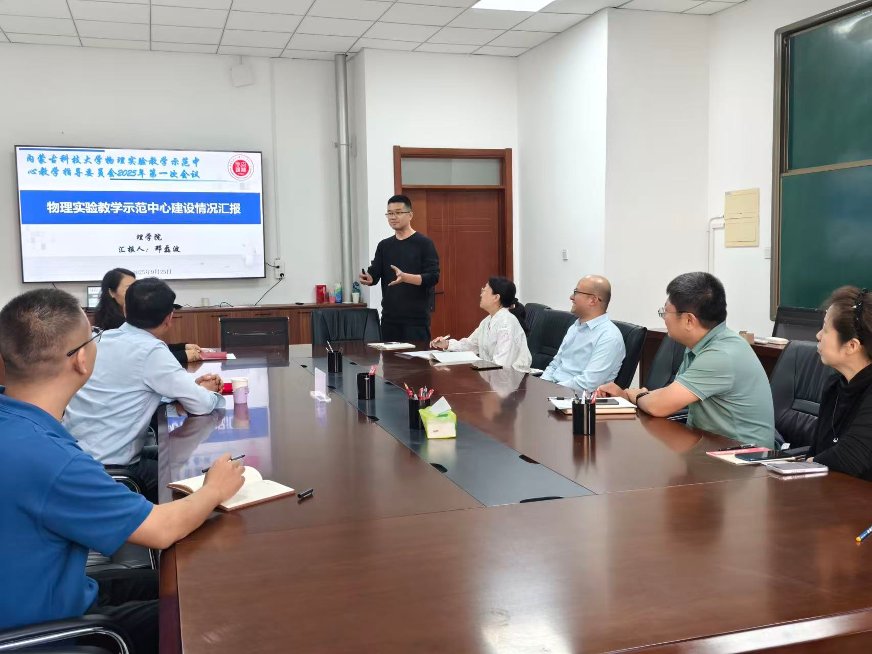 会议首先由物理实验室主任邓磊波向教学指导委员会作示范中心建设情况汇报。邓磊波主任系统汇报了近年来中心在育人理念、教学体系、师资队伍、教学资源、教学改革、示范引领等方面取得的成效,并重点汇报了示范中心在2025年自治区级实验教学示范中心建设成效评估中获得“优秀”的结果。同时,他也客观汇报了评估专家反馈的中心在硬件设施匹配度、师资队伍活力、教学成果凝练、对外交流合作等方面存在的问题与不足。