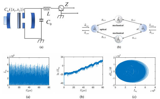 在30–50MHz范围时,37MHz为临界阈值,低于此值系统呈周期态(频谱为离散尖峰),高于则进入混沌态(频谱为连续宽谱);还观察到反直觉现象——LC光子强度从109降至105时,混沌复杂度反而增强,这是因为低光子种群强化了多模式非线性耦合。此外,调节驱动振幅与光机电耦合率也能精准控制混沌强度,这些成果不仅为大规模集成混沌光子源提供了设计思路,还为安全通信(物理层加密)与量子信息处理(如量子传感、纠错)搭建了稳健的理论与实验框架。